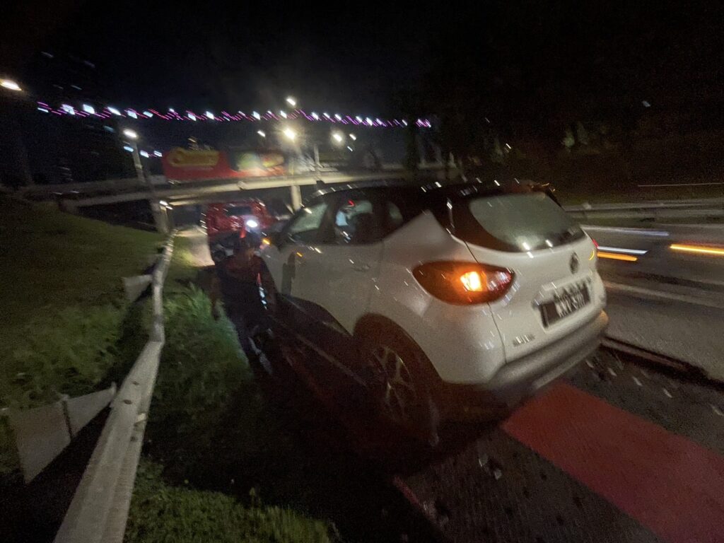 高速道路のど真ん中で、車がバーストして、タイヤがパンクしたんだよね。